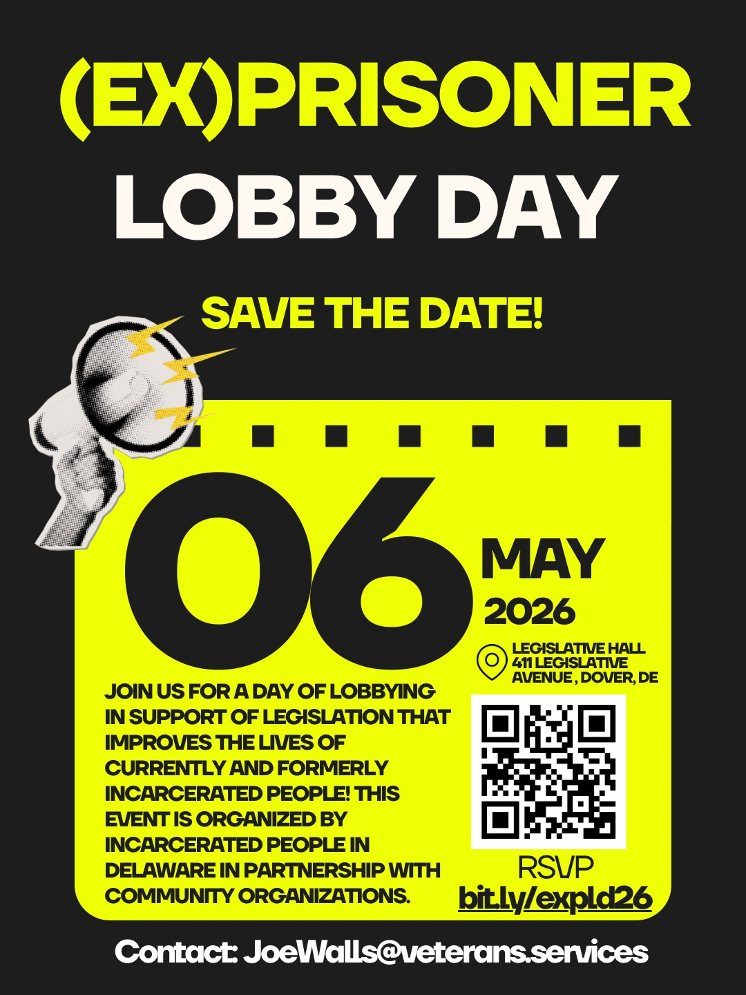 Join us at Legislative Hall on May 6, 2026, for the 2nd annual (Ex)Prisoner Lobby Day—a powerful opportunity to connect with legislators and urge them to support legislation that improves the lives of incarcerated and formerly incarcerated people.